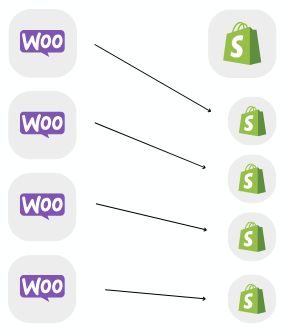 1. Ad ogni prodotto di Woocommerce corrisponde un prodotto di Shopify.